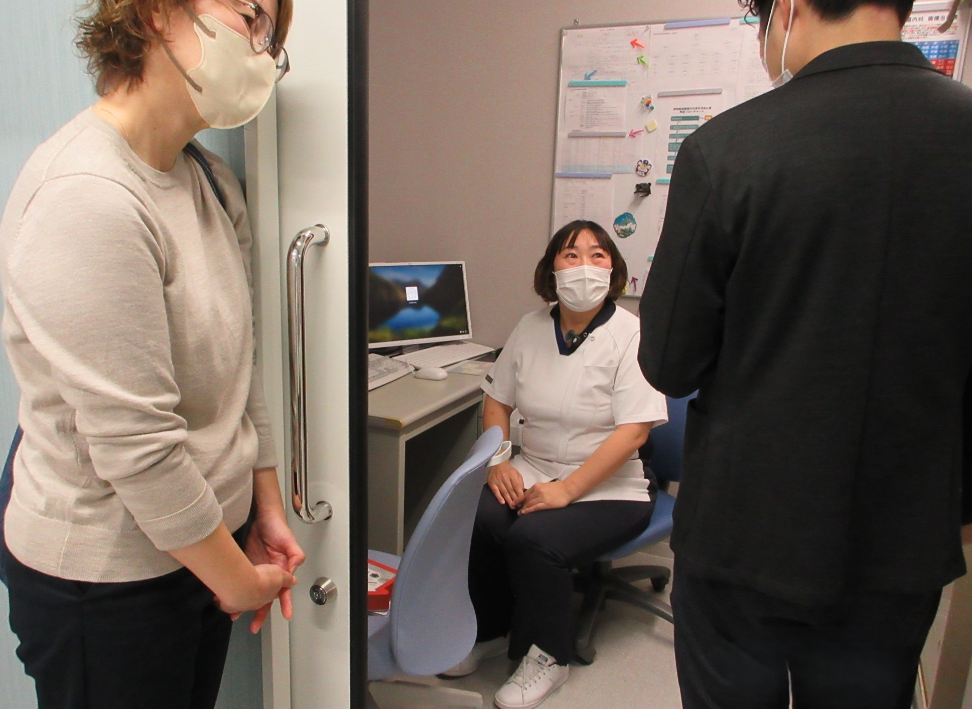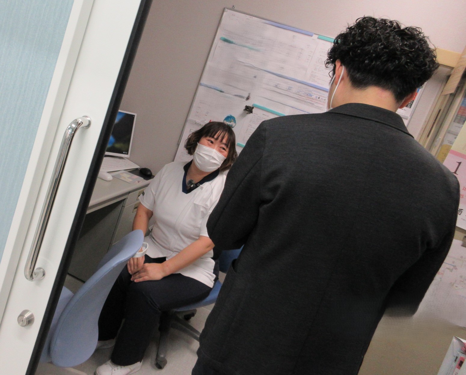と始まりますが、だいたい師長さんたちの撮影の時には事前打ち合わせはせず、内容も”師長さんにインタビューします”とだけ伝えてあります。訪室する直前に「これから行きますよ~(都合)大丈夫ですか?」とだけ連絡をします。