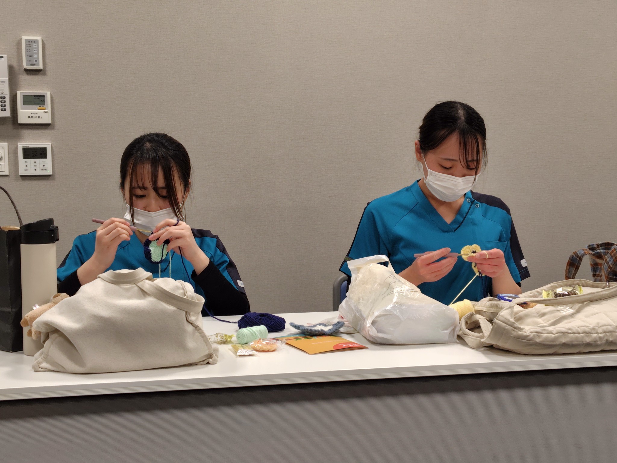 イメージはのんびり、ゆったりと・・という感じですが、実際は網目を数え、わからない所を教え合い、YouTubeを何度も見返し、画像を睨め付けるように見ながら編んでます(^^;