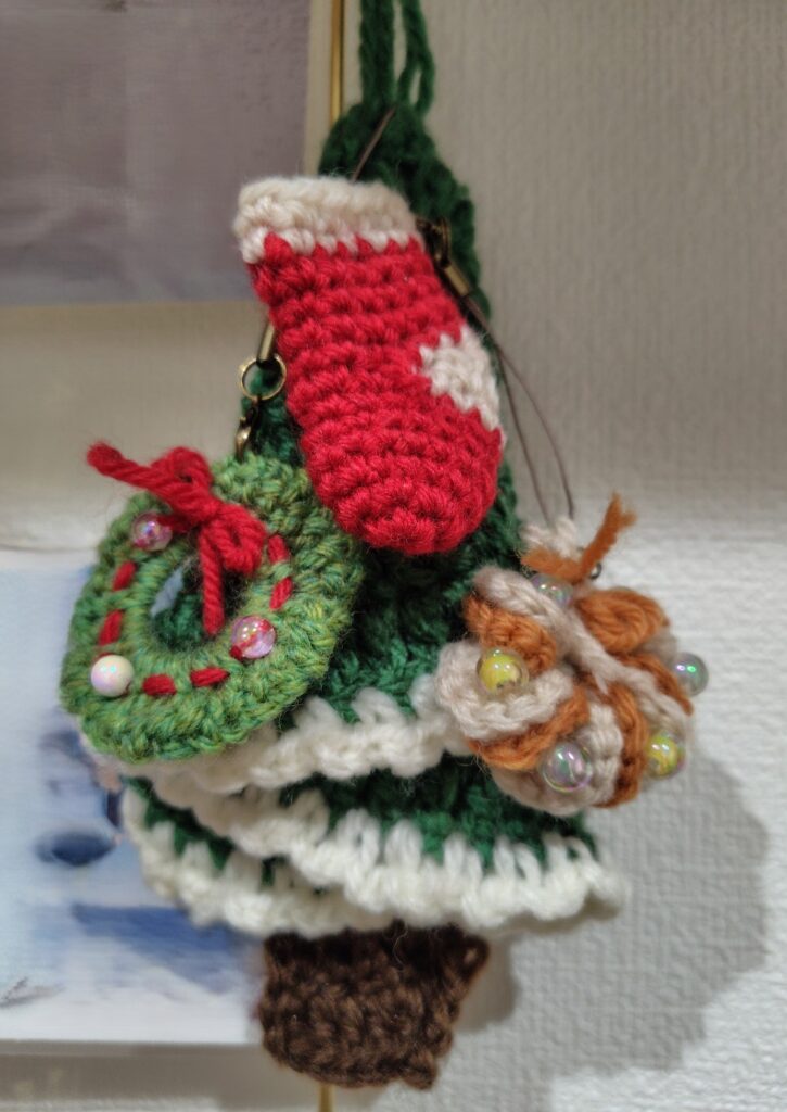 今回はクリスマスも近いのでオーナメントを編みましたよ。