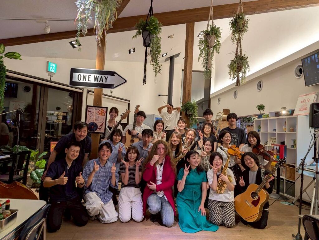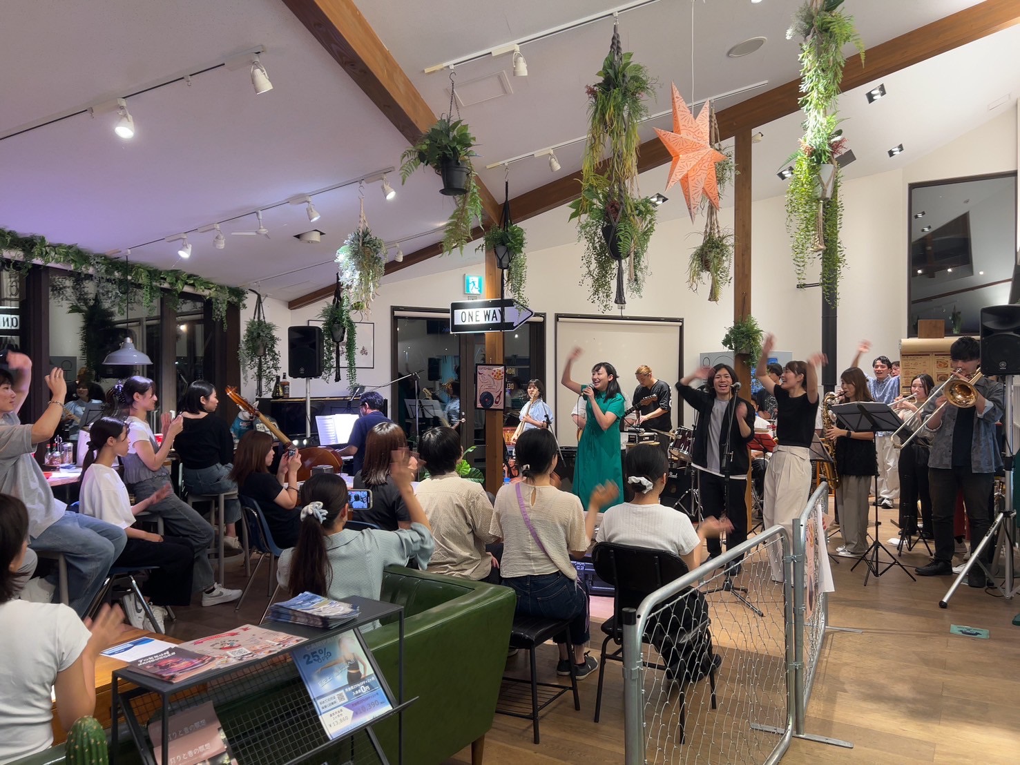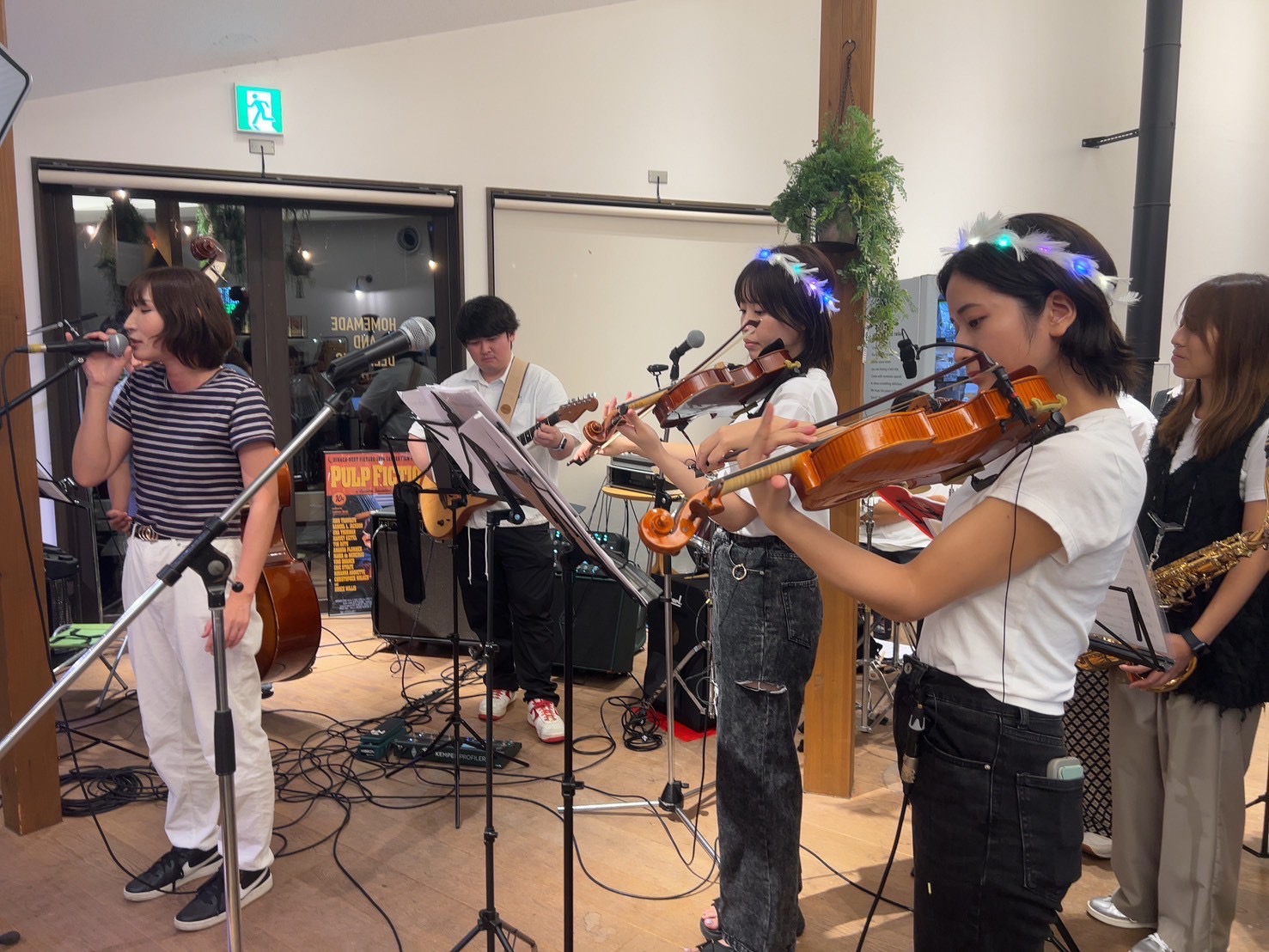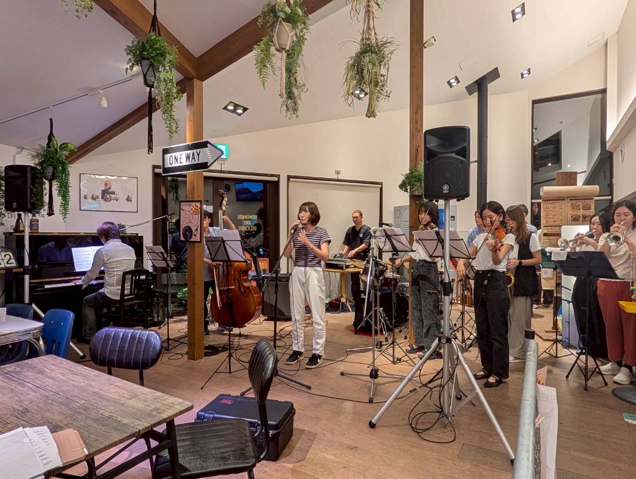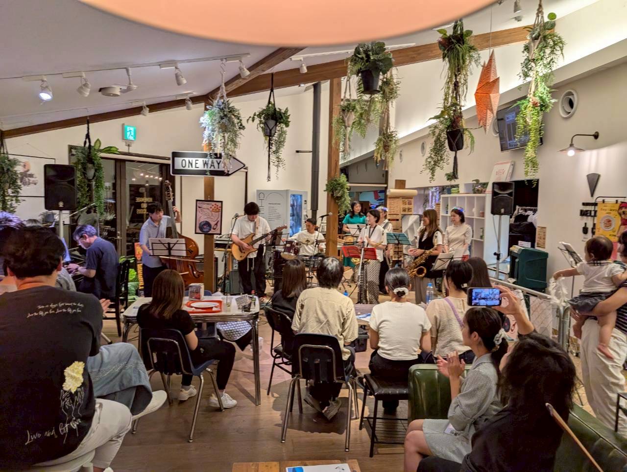ベテルギウスや打上花火、Soranji、にじいろ、情熱大陸など12曲ほど演奏してきました。50名ほどが集まり、音楽と食事を楽しんでいただきました。