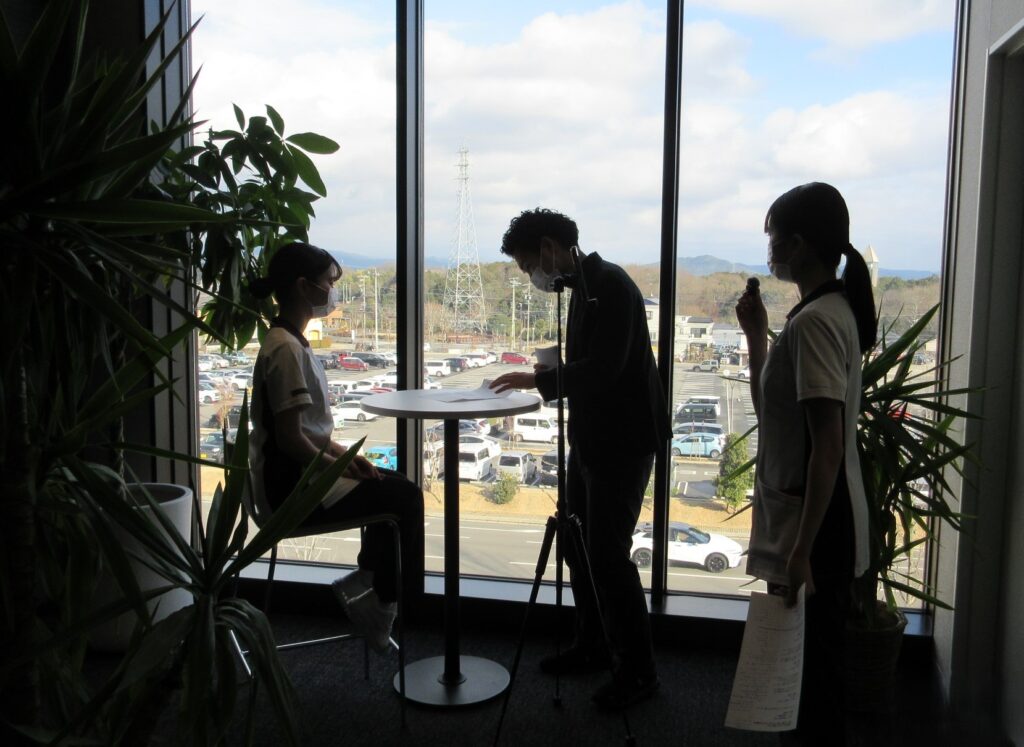 「先に違う所から撮影するので、このテーマの内容を少し考えておいてね」と言うと二人とも『はい!』と元気よく返事をして、一斉に書き出します。 この熱心さに撮影隊も「いつもながらこのやる気にはビックリさせられます(笑)」と。(違う所の撮影はまた違う日に乗せますのでお楽しみに)