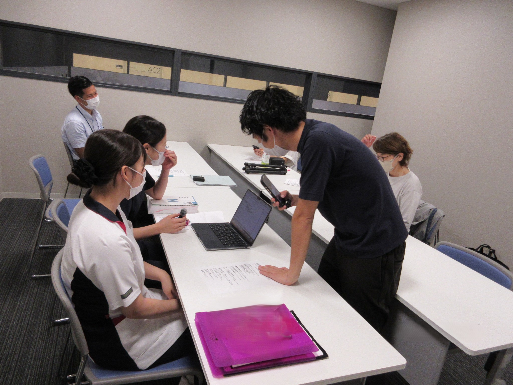 撮影直前の打ち合わせ。選ばれたスタッフは撮影当日の撮影直前にテーマについてのエピソードなどを話、それらを撮影に取り込んでいきます。当院のインスタグラムはその場その場で作り上げていくスタイルです。