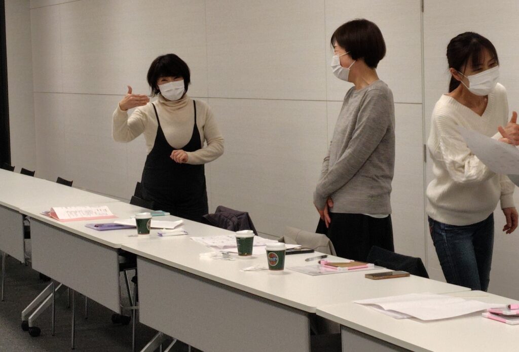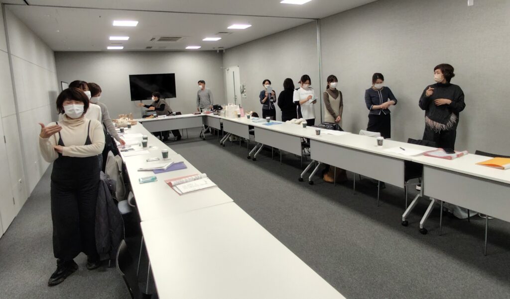 今年初の開催でしたので最後に「明けましておめでとう!」の手話をみんなで表現します。さすがにこれはみんな勉強してきました。左右の人差し指を左右から中央に振るのが「明けまして」顔の前で上向きに手を握り花火のように上に手を開くのが「おめでとう」です。