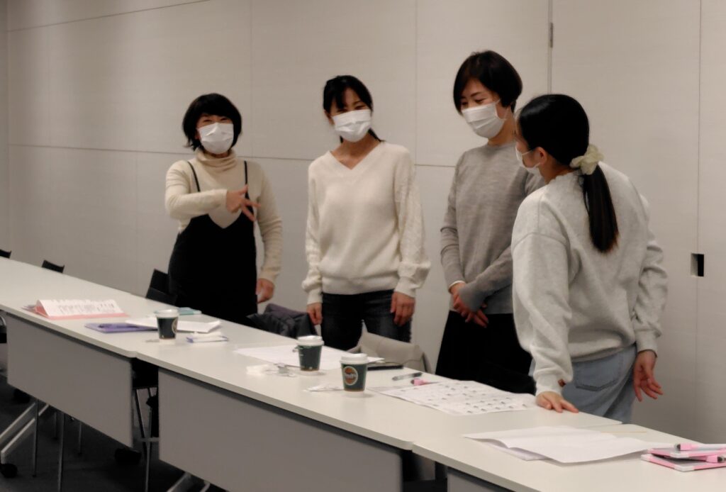 相手からの指文字を読み取り、最後の人が先生に答えを指文字で示します。