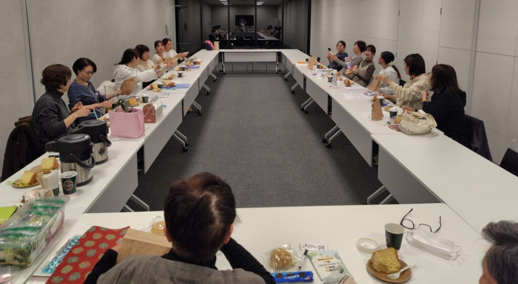 先生がパウンドケーキを焼いてきてくれました!ゲームの景品もあり、残りの30分はおいしいスイーツを頂きながら楽しい座談会となりました。