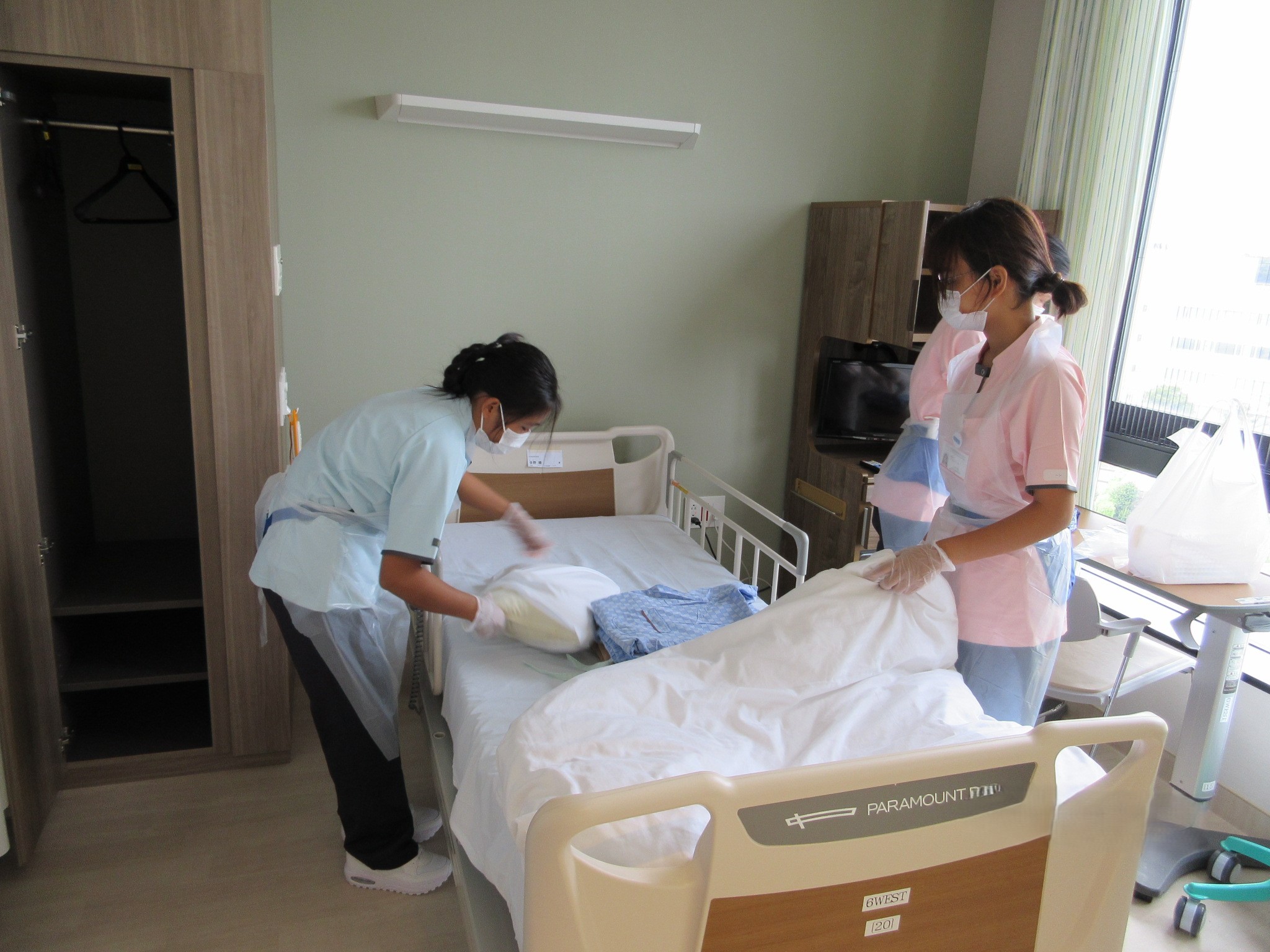 みんなとっても日本語が上手です。思ったより会話ができるのでびっくりしています。暫くの間e-ラーニングなど色々な研修で学び知識と技術を深めていきます。4月から来たミャンマーの先輩たちにも教えて頂き、一緒にナースエイドとして働きます。習慣が何かと違い、慣れない事も多くありますが笑顔を絶やさず頑張っていきます。
