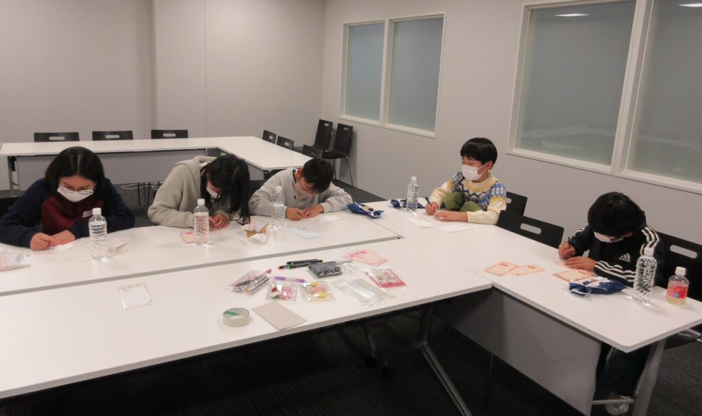 少し動揺しているお母さんたちに「では、お母さんへの思いを書いたお手紙を渡してくださ~い」と言うと、子供たちも少し照れながらお手紙を直接渡します。「え~~❣」とびっくりしているお母さん。嬉しそうに手紙を受け取ってくれました。後からゆっくり読んでくださいね。