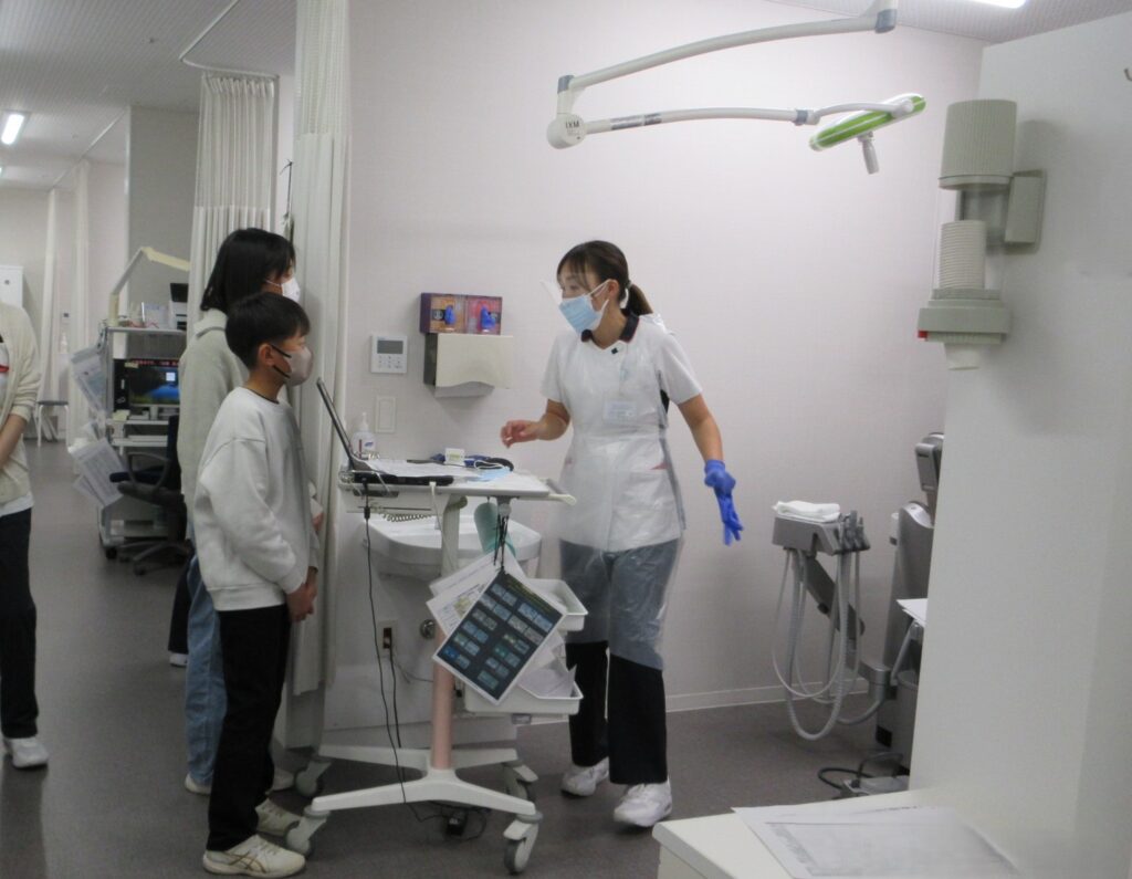 次は外来の歯科口腔外科です。今日は午後も患者さんが次から次へと診療があります。仲の良い兄弟でお母さんの仕事ぶりを見学します。忙しい中ですがお子さんの顔を見ると自然に笑顔となります。お母さん頑張ってね❣