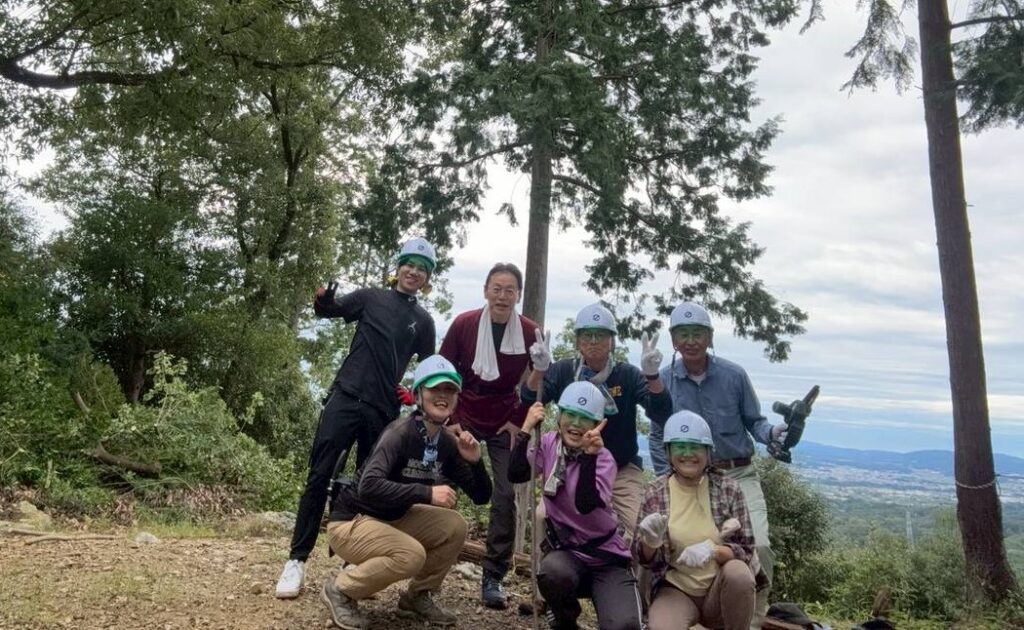 頑張りましたー!皆さんお疲れさまでした。日頃のストレスもさっぱり、きれいな景色を見て気分もすっきり。春にはシイタケを植える予定ですよ~~~