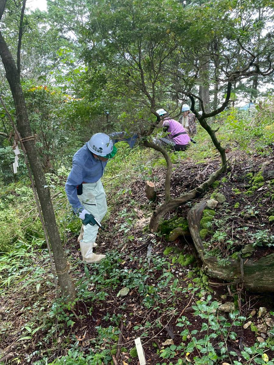みんなの頑張りで木や草で覆われていたところが、こんなにすっきりさっぱりときれいになりました。帰りもけががなく無事に帰れますようにと手を合わせます。