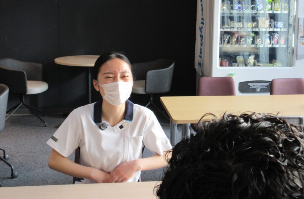 1年目Ns)はい 結構自分からも話しかけています。先輩もよく聞いてくれるので色々話しすぎちゃうんですけど、時々敬語を忘れちゃうんです(笑)「そうそう」とか「○○ね~」って言ってしまうから「そうです」って言い直しています。