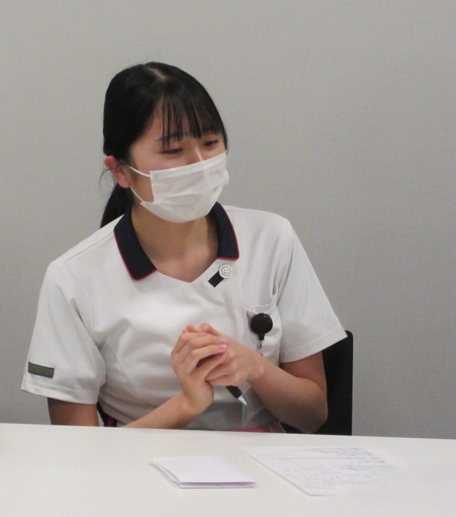 1年目看護師)先輩たちがいつも「何でも聞いて!」って言ってくれるんです。聞かないでやるより先輩たちもそう言ってくれるので私は聞いています。先輩たちは本当にちゃんと聞いてくれます。ここは本当に良い環境だと思います。